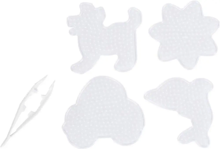 Prezentowany zestaw składa się z czterech różnorodnych płytek, stworzonych specjalnie do tworzenia zaprasowań z wykorzystaniem koralików. Dodatkowo w skład zestawu wchodzi również pęseta.