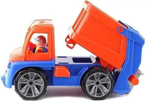 Intensywnie kolorowy pojazd dla dzieci – śmieciarka, osiągająca długość 29 cm, jest produktem zrobionym z giętkiego, jednak trwałego plastiku najwyższej jakości, zgodnego z europejskimi standardami bezpieczeństwa. Ta jednostka to nie tylko atrakcyjny wygląd, ale także praktyczność - posiada funkcjonalnie zaprojektowaną tylną klapę, która może być podniesiona, umożliwiając umieszczenie na przykład piasku w środku. Dodatkowym atutem jest to, że cały ładunek można łatwo przechylić i opróżnić w wybranym miejscu. Kabina kierowcy również posiada możliwość podnoszenia. Zestaw zawiera również figurkę, która dodaje zabawie więcej realizmu i zabawy.