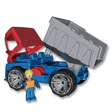 Atrakcyjna wywrotka o rozmiarach 27 cm, zrobiona z elastycznego plastyku najwyższej jakości, zgodnego z normami obowiązującymi w Europie. Praktyczny pojazd, w którym skrzynia ładunkowa oraz kabina kierowcy mają możliwość podnoszenia się.