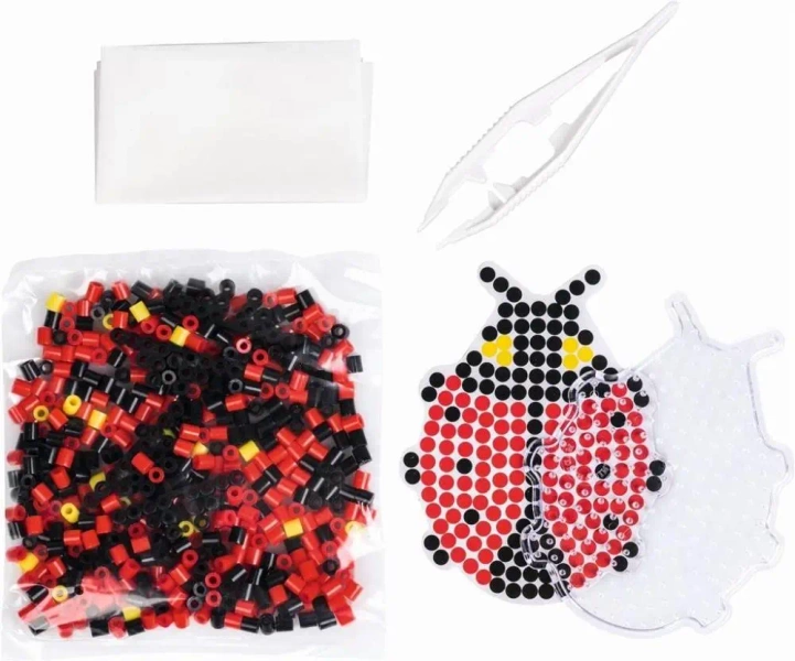 W skład zestawu wchodzą koraliki do rękodzieła, które umożliwiają stworzenie dwóch różnych wzorów na dołączonym podkładzie. Pakiet obejmuje również pęsetę, papier do rękodzieła oraz szczegółową instrukcję obsługi.