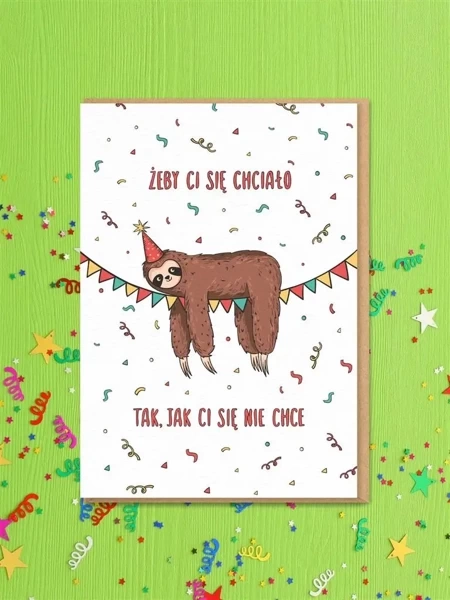 Kartka Urodzinowa z Motywem Leniwca "Żeby Ci się chciało"