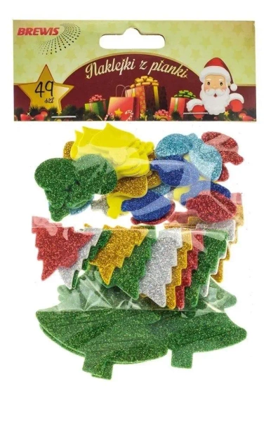 Naklejki z pianki choinki i bąbki z brokatem 49szt