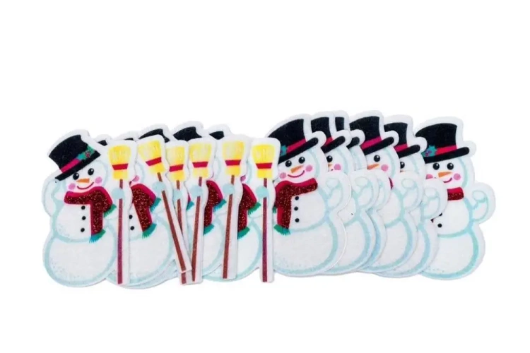 Przedstawiamy zestaw naklejek z filcu przedstawiających bałwanki. W pakiecie znajdziesz aż 12 sztuk, które świetnie sprawdzą się jako dekoracje na świąteczne prezenty lub jako elementy tworzenia kartek okolicznościowych.