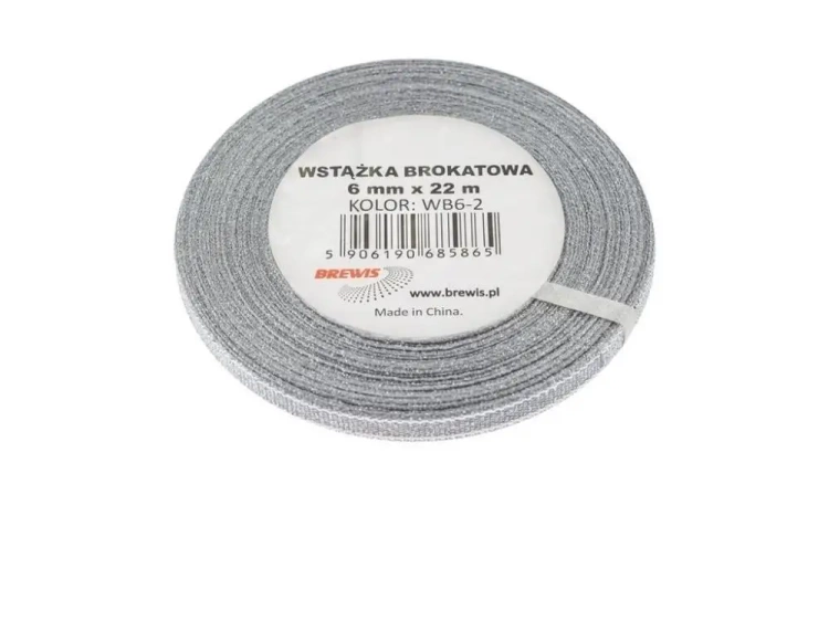 Wstążka brokatowa srebrna 6mmx22m - Brewis
