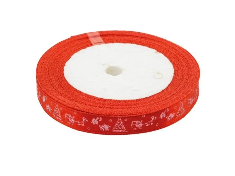 Satynowa wstążka z bożonarodzeniowym motywem o wymiarach 12mmx22m