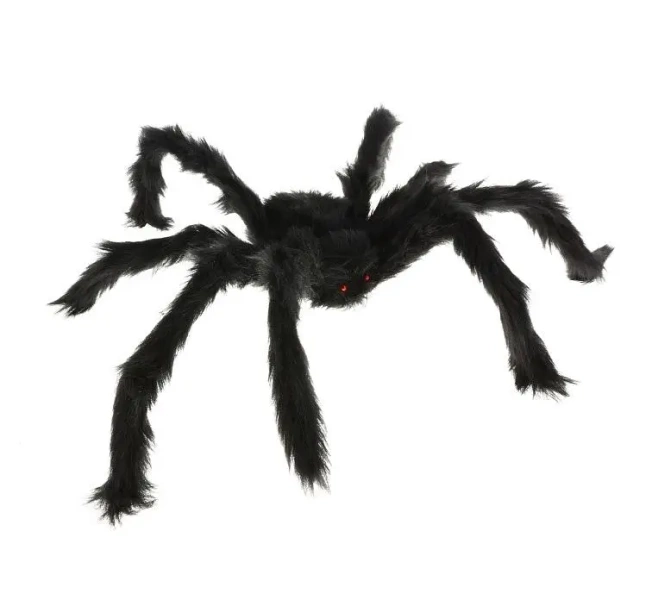 DUŻY PAJĄK Ilość sztuk w opakowaniu: 1 Wymiar: ok. 60 cm. Duży, sztuczny włochaty pająk z czerwonymi oczami Dzięki giętkim odnóżom, można ustawić pająka w dowolnej pozycji.