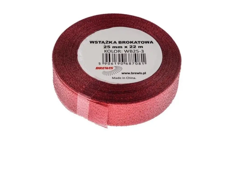 Wstążka brokatowa czerwona 25mmx22m - Brewis