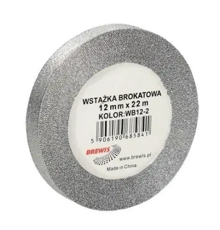 Wstążka brokatowa srebrna 12mmx22m - Brewis
