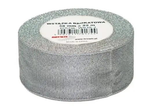 Wstążka brokatowa srebrna 38mmx22m - Brewis