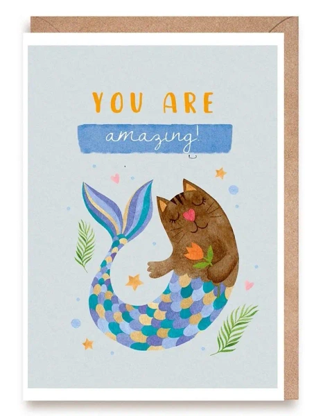 Kartka okolicznościowa "YOU'RE ARE AMAZING" z kocim motywem syreny