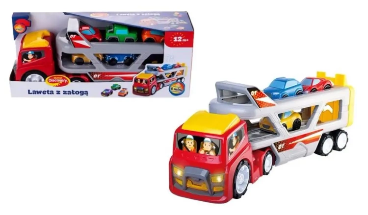 Ten wspaniały zestaw zawiera połyskującą lawetę w dużym formacie, mnóstwo barwnych samochodzików oraz mnóstwo realistycznych dźwięków! Ta imponująca laweta, oprócz światełek i efektów dźwiękowych, posiada również zabawną melodię. Dodatkowo, do zestawu dołączonych jest 6 miniaturowych aut, które idealnie pasują na dwie platformy lawety. Każde z aut odróżnia się od siebie pod względem kształtu i koloru, ułatwiając ich rozróżnianie. Ponadto, laweta posiada rampę z opuszczanym wjazdem, dla łatwiejszego załadunku samochodzików.