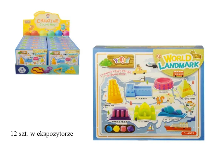 Zaprojektuj i zbuduj swoje własne wersje najbardziej znanych budowli na świecie za pomocą naszego zestawu z masy plastycznej! Zestaw zawiera 4 kolory masy plastycznej, wałek, nożyk oraz unikalne foremki, które pozwalają na wyciskanie takich popularnych budowli jak: Taj Mahal, Wieża Eiffla, Koloseum, Akropol czy Krzywa Wieża w Pizie. Kreatywna zabawa z naszym zestawem nie tylko gwarantuje wspaniałe chwile pełne radości, ale także pomaga rozwijać kreatywność u najmłodszych. Już od 3 roku życia, Twoje dziecko może poznawać architekturę i bawić się w budowanie własnych miniatur światowych zabytków. Produkt jest bezpieczny dla dzieci, zapakowany w atrakcyjne kartonowe opakowanie. Wymiary podane na stronie dotyczą opakowania produktu.EAN: 5902496183593