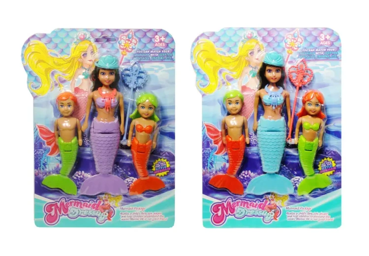 Odkryj morskie głębiny z zestawem 3 sympatycznych lalek syrenek. Największa z nich to mechanizm, który napędza ją do poruszania się w wodzie. Możesz ją dodatkowo ozdobić koroną, naszyjnikiem lub berłem, które dołączono do zestawu.