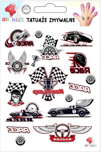 Tatuaże zmywalne dla dzieci Wyścigi - All4Kids
