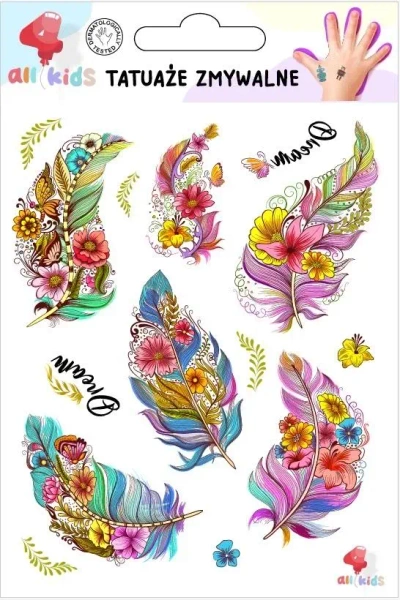 Tatuaże zmywalne dla dzieci Pióra i kwiaty - All4Kids