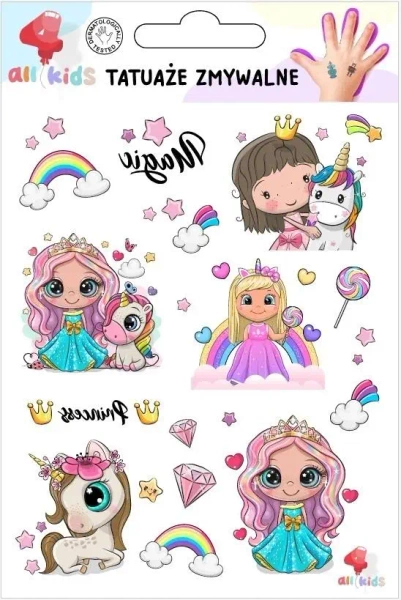 Tatuaże zmywalne dla dzieci Księżniczki jednorożce - All4Kids
