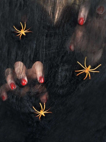 Sieć w stylu pajączyny w kolorze czarnym, która posiada dodatkowe ozdobne elementy w postaci pająka. Ten zaś przyszyty jest do sieci, co znacząco podnosi atrakcyjność i realność dekoracji. Właściwość rozciągliwości umożliwia regulację gęstości oraz efektu wizualnego. To idealny dodatek do wszelkich wydarzeń związanych z Halloween, jak przykładowo strachy przy ulicy, imprezy tematyczne czy domowej produkcji 'domu strachu'. Umożliwia łatwe i szybkie przygotowanie dekoracji, które przyciągają uwagę i budzą wiele emocji. Każde opakowanie zawiera 20 g produktu.