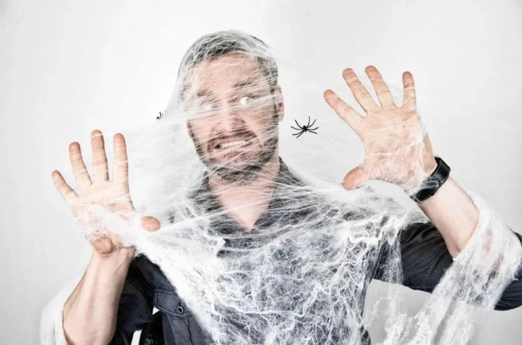 Porywający dodatek dekoracyjny - biała pajęczyna z pająkiem