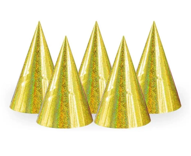 HOLOGRAFICZNE CZAPECZKI URODZINOWE Z PAPIERU, W KOLORZE ZŁOTYM