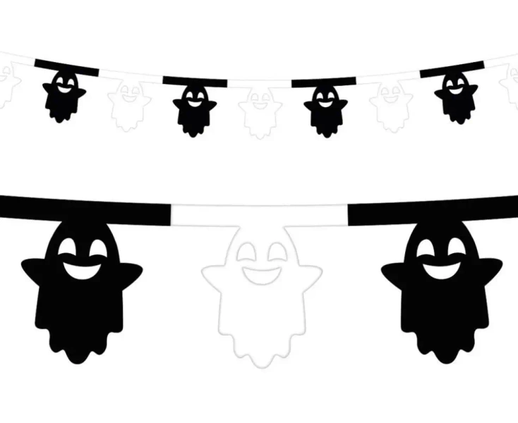 Girlanda papierowa z duszkami, w kolorze biało-czarnym