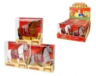 To miękka figura konika, wykonana z weluru, która jest dostępna w szereg różnych odcieni. Kolor jest wybierany na chybił trafił i cena uwzględnia jedną sztukę.Zabawka dostarczana jest w pudełku o przezroczystych ściankach. Mięciutki welurowy konik z siodłem to perfekcyjny pomysł na prezent dla małego miłośnika zwierząt!