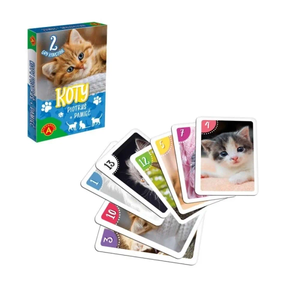 Prezentowany zestaw to 25 pięknych i realistycznie wykonanych kart z wizerunkami słodkich kotków. Dzięki nim możliwe jest zapoznanie dzieci z zasadami dwóch podstawowych gier karcianych: "Piotruś" i "Pamięć". Obie te gry znakomicie rozwijają zdolności obserwacyjne, kształtują umiejętności skojarzeń, a także wpajają od najmłodszych lat zasady interakcji społecznych. Jest to idealne narzędzie dla najmłodszych, by rozpocząć swoją przygodę ze światem gier.