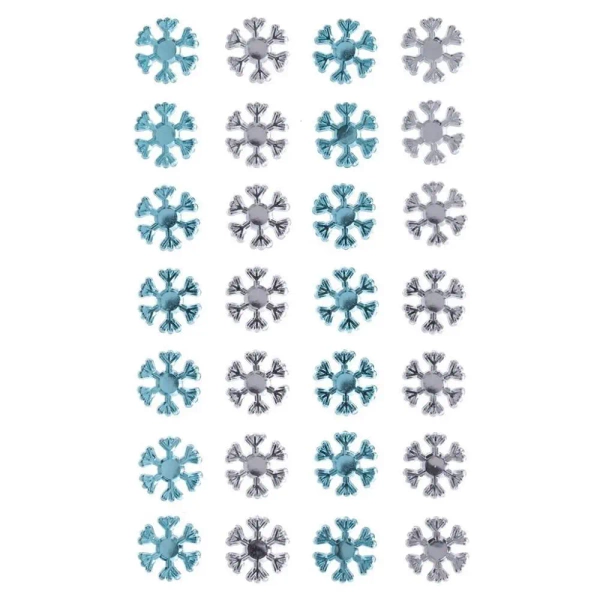 Te kryształki samoprzylepne mają pełen wdzięku kształt śnieżynki, co czyni je idealnym dodatkiem do wszelakich projektów kreatywnych o zimowo-świątecznym charakterze. Kryształki są dostępne w dwóch kolorach: niebienskim błękicie i eleganckim srebrze.