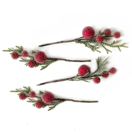 Szronione gałązki z jagodami czerwone 4szt - Dalprint dpCraft