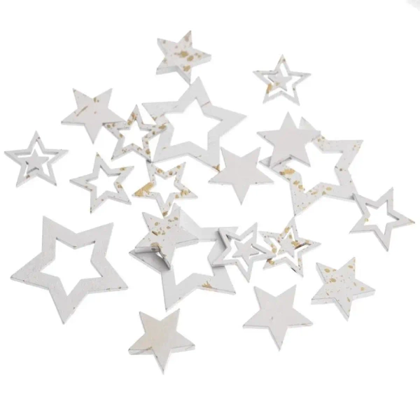 Drewniane gwiazdki białe złocone 20szt - Dalprint dpCraft
