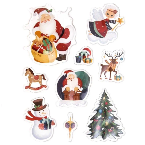 Naklejki żelowe z brokatem święta 9szt - Dalprint dpCraft