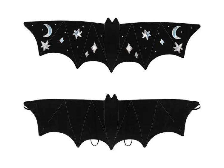 Gotowy do założenia strój, imitujący skrzydła nietoperza, o nietuzinkowym czarnym kolorze z srebrnymi akcentami. Idealny dla małych entuzjastów przebieranek w wieku 3 - 7 lat.