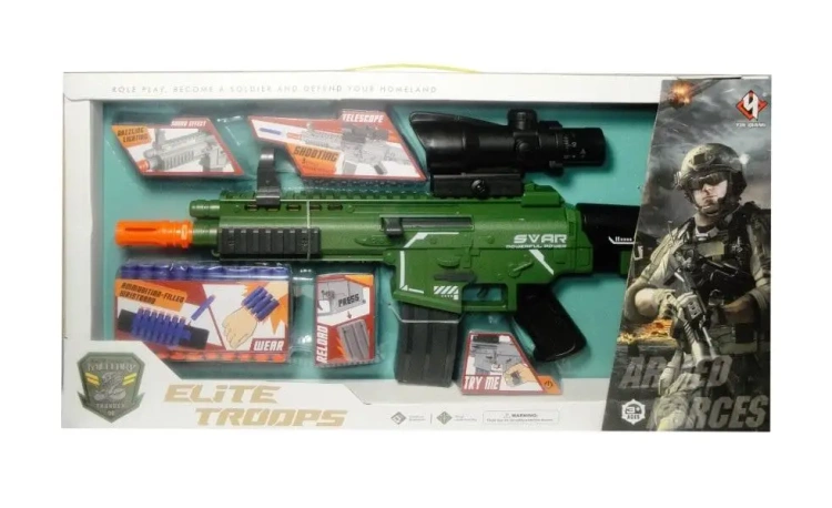 Na uwagę zasługuje również fakt, że karabin ma wbudowane kolorowe światełka, które dodają mu unikalnego charakteru. Zachęca to do zabawy nawet po zmroku, tworząc niesamowity efekt w ciemności.