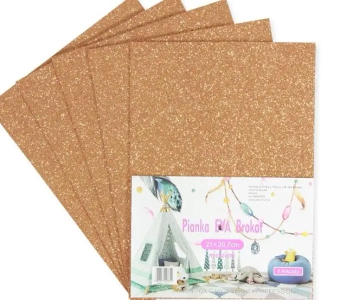 Miedziana pianka brokatowa o wymiarach 21x29,7cm w zestawie 5 sztuk
