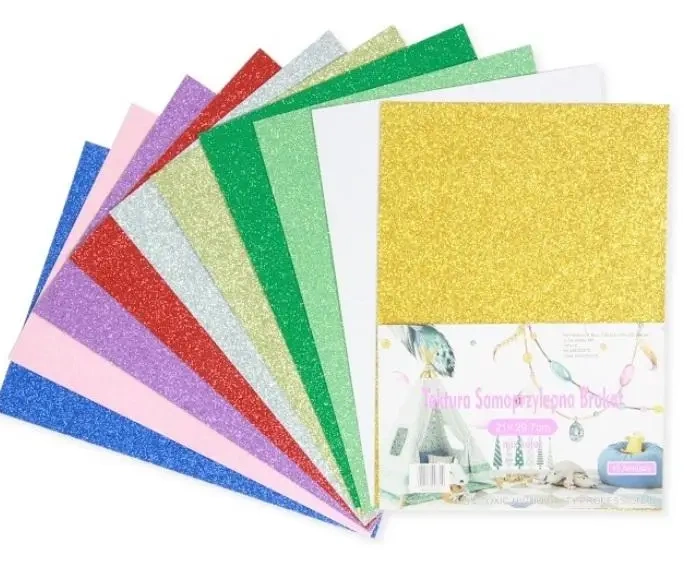 Samoprzylepna tektura brokatowa dostępna w 10 odcieniach
