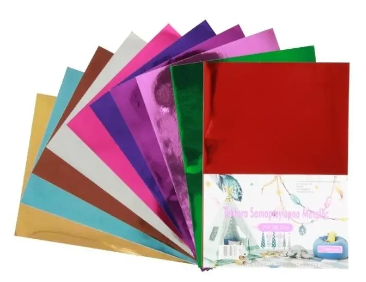 Prezentujemy tekturę metalic samoprzylepną, dostępną aż w dziesięciu różnych kolorach. Idealny towarzysz dla zabawy czy pracy, podkreślający wyrazistość i kreatywność Twoich projektów.