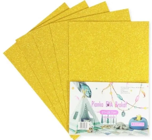 Złota Pianka Brokatowa o wymiarach 21x29,7cm, zestaw 5 sztuk
