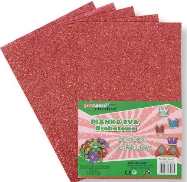To pianka multicolor z brokatem groszowego, do której zestawu dołączone są 5 sztuk. Produkt posiada wymiary 20x30, a dodatkowo wytwarzany jest z 6 kolorów, tworząc niepowtarzalne zestawienie barwne. Łączy w sobie funkcjonalność i estetykę - jest zarówno utylitarny, jak i atrakcyjny wizualnie. Właściwości brokatu wprowadzają do produktu dodatkową połyskującą nutę, sprzyjającą twórczym eksperymentom. Dzięki temu pianka multicolor z brokatem jest idealnym wyborem dla osób ceniących niebanalne materiały.