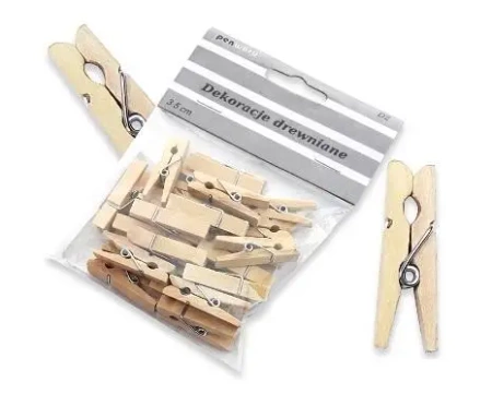 Zestaw składa się z 24 klamerek stworzonych z trwałego drewna, każda o długości 3,5 cm. Idealne do różnorodnych zastosowań domowych.EAN: 5902557412952