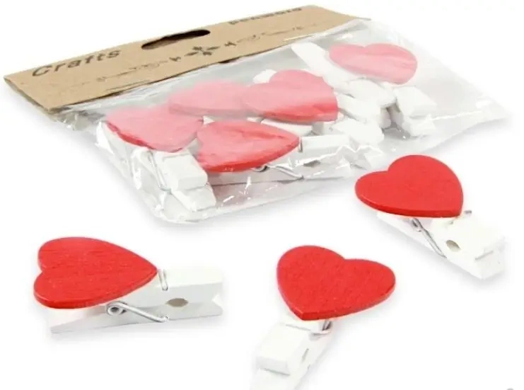 Zestaw 10 drewnianych klamerek ozdobionych serduszkiem