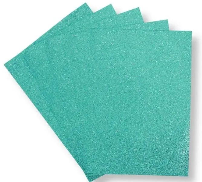 Brokatowa pianka w odcieniu turkusowym o wymiarach 21x29,7cm, pakowana w zestaw 5 sztuk