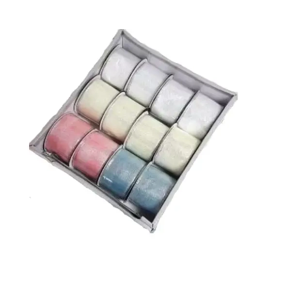 Prezentujemy zestaw 12 sztuk ozdobnej wstążki z drutem. Wymiary wstążki wynoszą 38mmx4,5m. Wstążka ta doskonale sprawdzi się podczas tworzenia dekoracji, pakowania prezentów lub do innych celów kreatywnych.EAN: 5902557409785