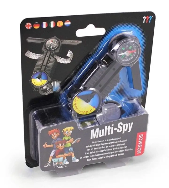 Multi-Szpieg to niewielkie, podręczne narzędzie, które zmieści się w każdej kieszeni i towarzyszyć Ci będzie w trakcie prowadzenia dochodzeń. Dzięki niemu, miejsce zbrodni możesz z łatwością przeanalizować za pomocą wbudowanego szkła powiększającego, linijki i pincety. Zachowanie poufności informacji, to kluczowy element pracy detektywa. Multi-Szpieg pozwala na kodowanie i dekodowanie informacji za pomocą dysków kodujących. Dodatkowo, posiada zintegrowany tajny schowek, w którym możesz ukryć krótkie wiadomości i hasła. Istotne w pracy detektywa jest także umiejętność szybkiego poruszania się i orientacji w terenie. Przydać Ci się w tym mogą wbudowane w Multi-Szpiegu lusterko peryskopowe, kompas i zegar słoneczny - doskonałe narzędzia, gdy musisz prowadzić pościg. Wykorzystaj każdą z funkcji Multi-Szpiega i poczuj się jak prawdziwy super szpieg!EAN: 4002051616168
