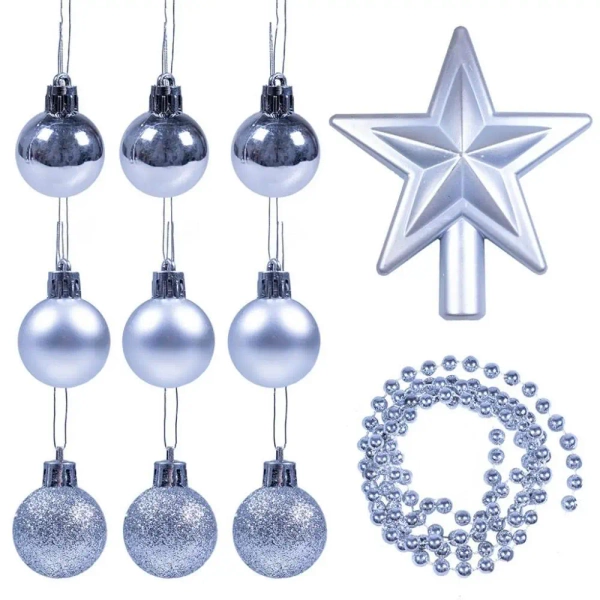 Bombki + gwiazda + łańcuch srebrne 11el - Arpex