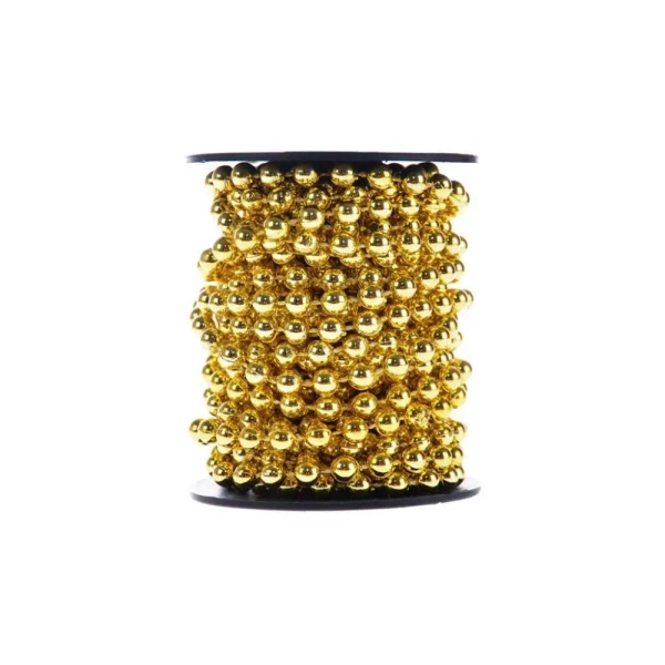 Ten elegancki, złoty łańcuch ozdobiony jest koralikami o średnicy 6 mm. Produkt dostępny jest na szpuli i ma długość 6 m. Jest to doskonały dodatek do świątecznej dekoracji - nie tylko choinki, ale również domu czy stroików. Jego uniwersalny, błyszczący design świetnie komponuje się z różnymi aranżacjami wnętrz.