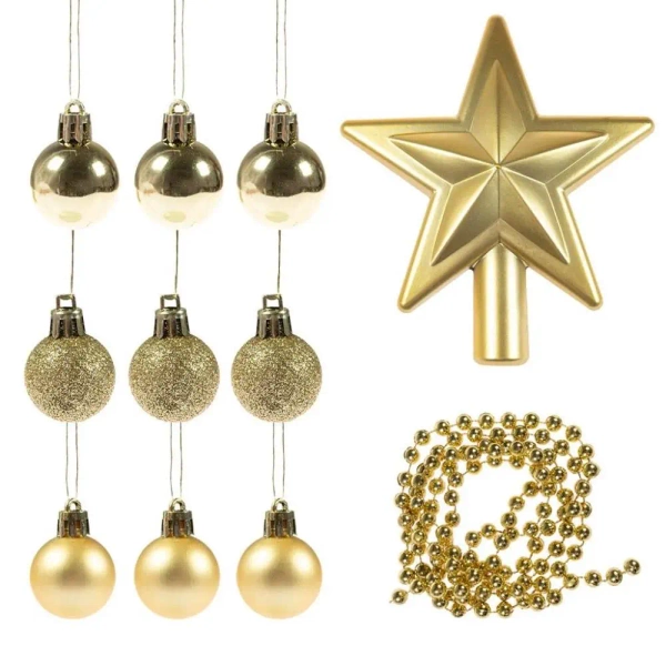 Bombki + gwiazda + łańcuch złoty 11el - Arpex