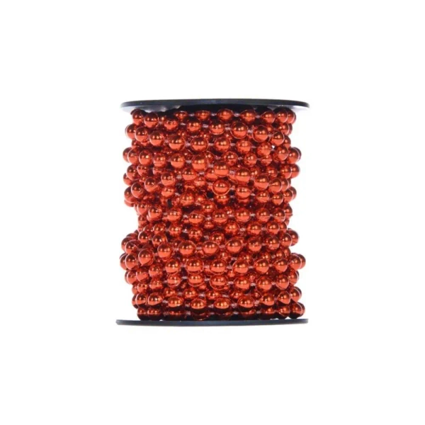 Prezentujemy łańcuch ozdobny z czerwonymi koralikami o średnicy 6 mm na szpulce. To wszechstronny dodatek, który dodaje blasku do świątecznych dekoracji, zarówno na choinkę, jak i do innych elementów wystroju wnętrz, takich jak stroiki. Idealne rozwiązanie dla różnorodnych stylizacji. Całość ma długość 6 metrów.