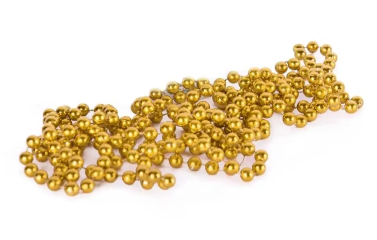 Chcesz wyjątkowo ozdobić swoją choinkę na zbliżające się święta? Ten złoty łańcuch z perełkami to idealna dekoracja! Jego długość wynosi około 270 cm, dzięki czemu z łatwością okręcisz nim całą choinkę. Każda z perełek ma średnicę około 8 mm, co dodaje elegancji i subtelnego blasku.