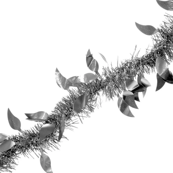 Srebrny łańcuch choinkowy o matowym wykończeniu z ozdobnymi listkami