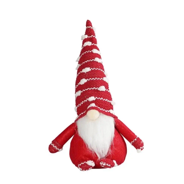 Ten pokochany skrzat jest wykonany z delikatnego filcu oraz czerwonego materiału, które razem tworzą fantastyczną dekorację. Jest to ozdoba stojąca, która za sprawą swojego obciążonego dna nie przewraca się, zapewniając stabilność. Końcówka długiej, materiałowej czapki skrzata jest przyozdobiona wypukłymi, miękkimi kropkami, które dodają jej unikalnego charakteru.
