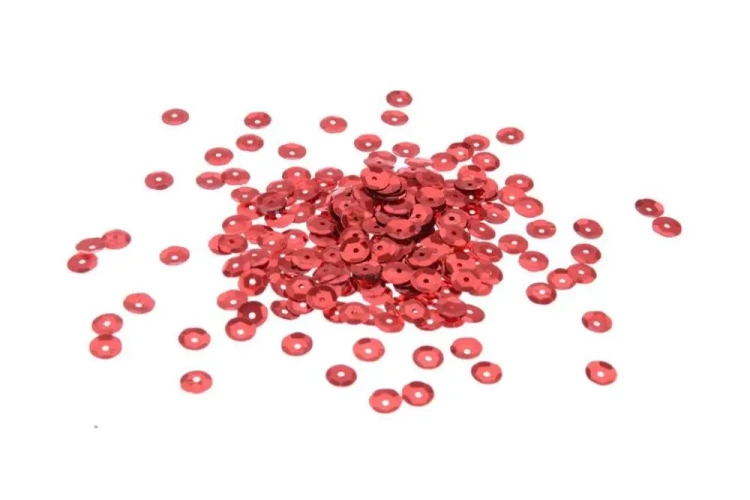 Prezentowany tu produkt to elementy przeznaczone do ozdabiania, które charakteryzują się średnicą 7 mm. W pakiecie znajduje się 15 g tych efektownych czerwonych cekinów.